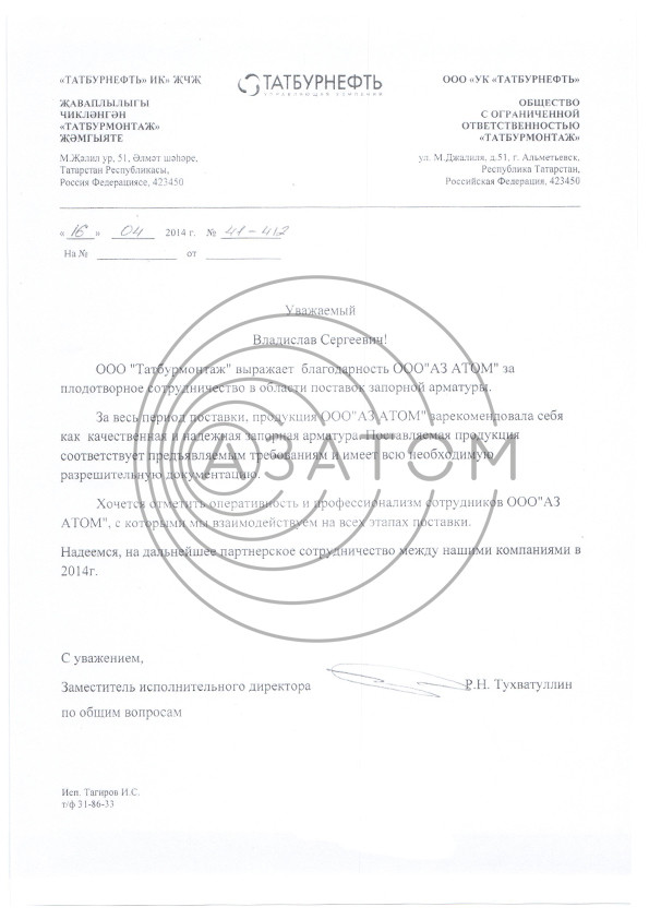 8-800-2-508-708 e-mail: rd@az-atom.ru