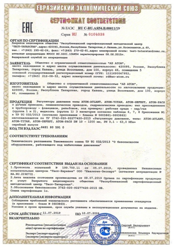 Серия «ATLANT» - регуляторы давления поршневого типа, предназначены для систем с большими и средними расходами на газообразные и жидкие среды.